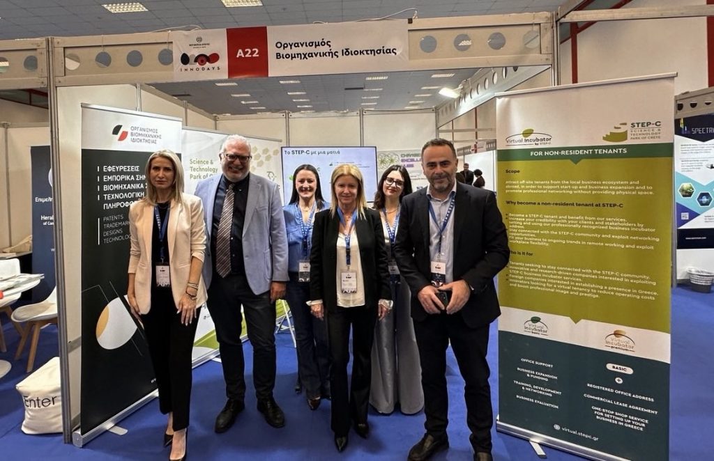 Με μεγάλη επιτυχία ολοκληρώθηκαν τα Innodays 2025: «Η Κρήτη της γνώσης και της παραγωγής», αναδεικνύοντας για ακόμη μια φορά τη δυναμική της Κρήτης στον χώρο της καινοτομίας. Το Επιστημονικό και Τεχνολογικό Πάρκο Κρήτης (STEP-C), στο περίπτερο A22, είχε μια ισχυρή παρουσία, φιλοξενώντας και τον Οργανισμό Βιομηχανικής Ιδιοκτησίας (ΟΒΙ), και παρουσιάζοντας στους επισκέπτες πρωτοποριακές υπηρεσίες και προϊόντα από τις επιχειρήσεις της Θερμοκοιτίδας STEP-C, καθώς και τις δράσεις του που στηρίζουν την επιχειρηματικότητα και την καινοτομία στο νησί.
